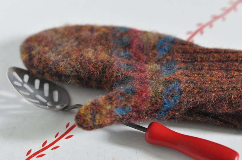 In my sewing room switch about I found a bin of felted sweaters. I made a few play oven mitts.
